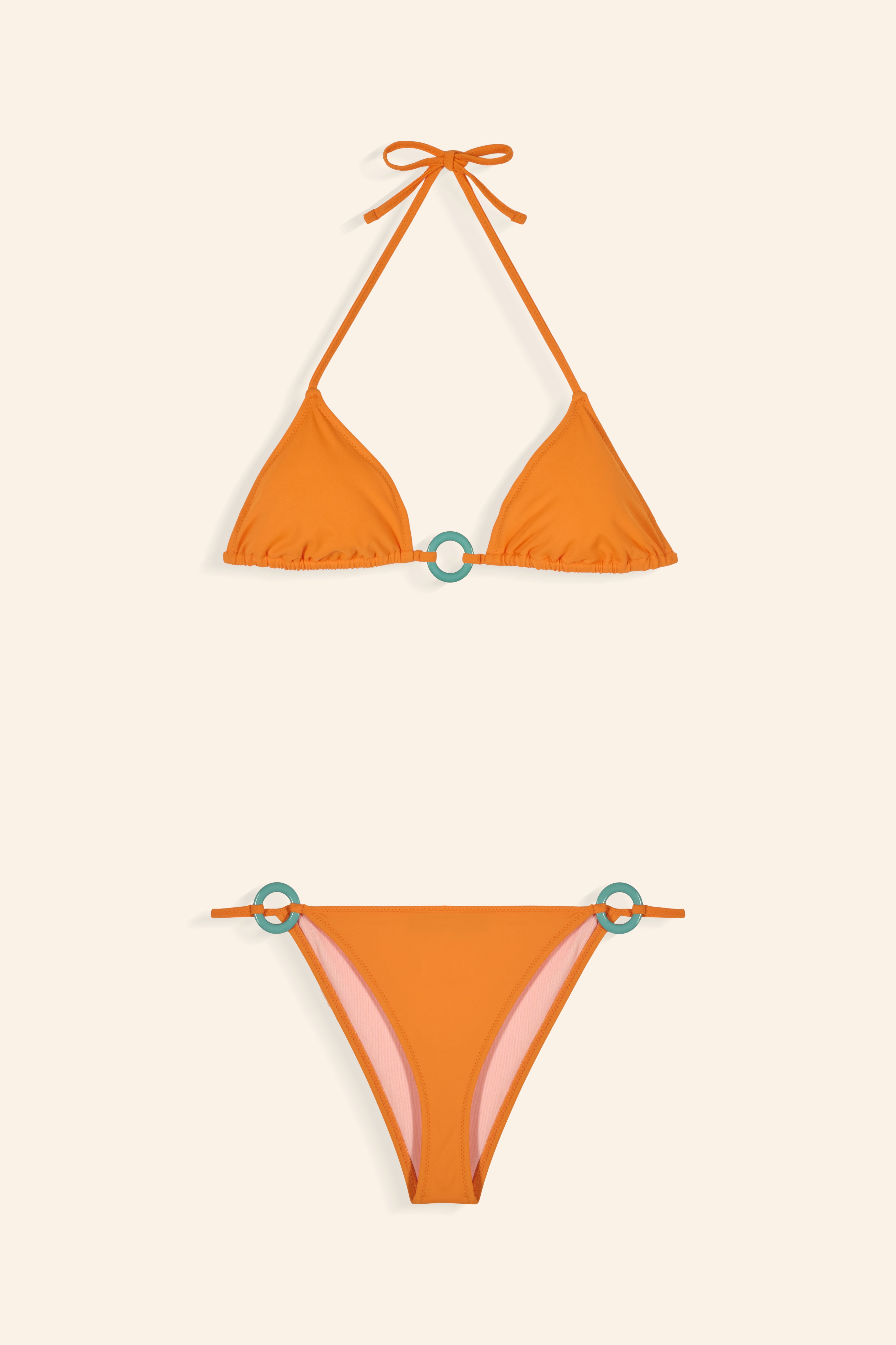 The Camilla Orange model has two medium circles on each side of the bottoms. This model has a lower and normal cut bottom that flatters any body shape.