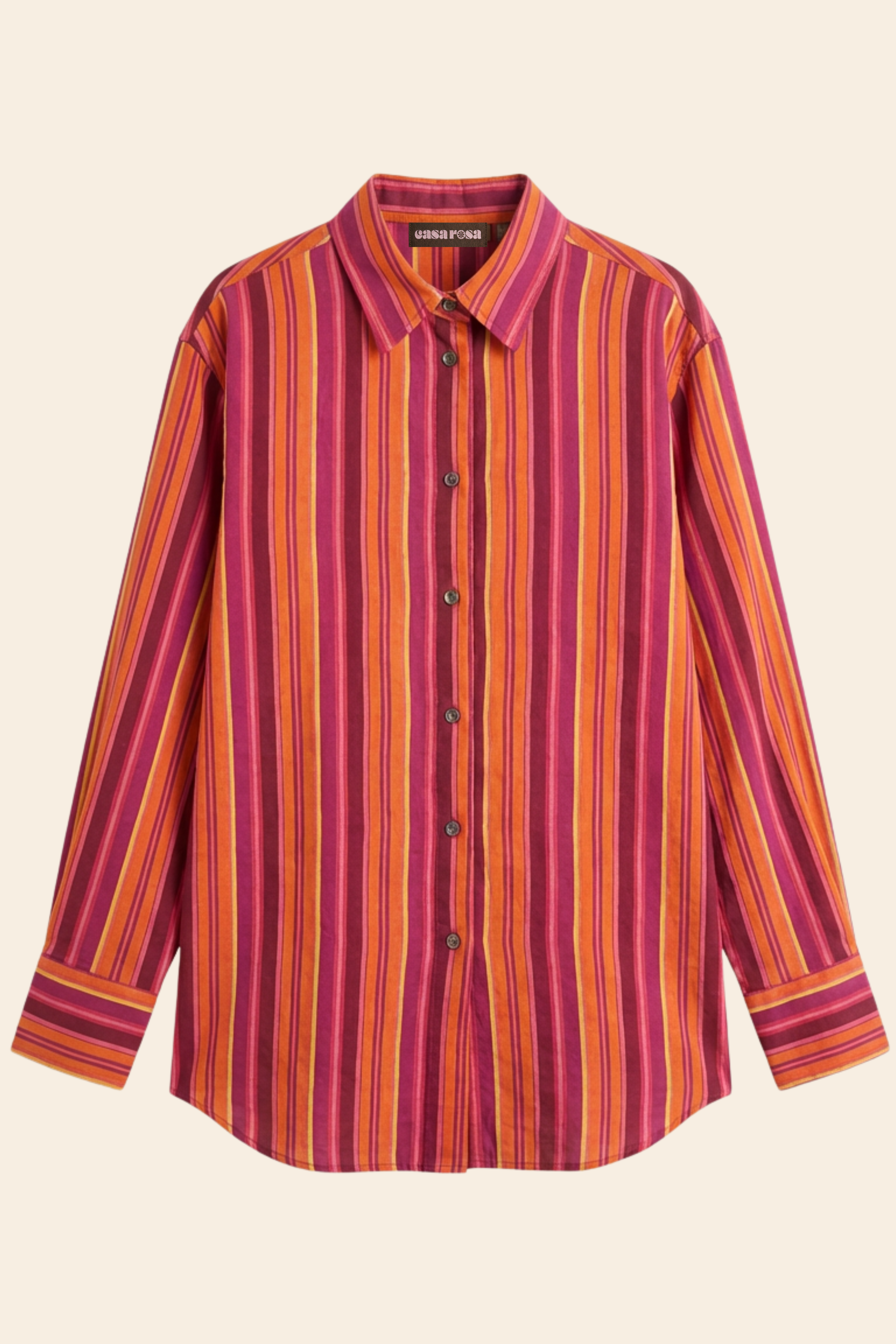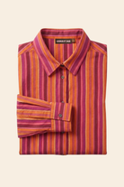 Chemise à rayures à manches longues avec col classique, confectionnée dans une matière légère et une coupe oversize décontractée. Chaque motif est imprimé à la main selon la technique traditionnelle du block print, rendant chaque pièce unique.