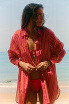 Taille unique, elle se porte comme une chemise oversize ou comme une robe de plage courte pour une allure estivale effortless.