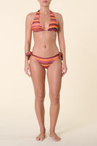 Doté d’un haut triangle entièrement ajustable, il met joliment en valeur la poitrine tout en offrant un maintien confortable. Le bas à nouer sur les côtés permet un ajustement parfait et s’adapte naturellement à la silhouette.