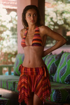 Le bikini Gaia est un nouveau maillot de bain deux-pièces, caractérisé par un imprimé vague vibrant d’inspiration rétro et une silhouette épurée et flatteuse.