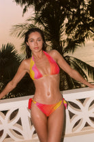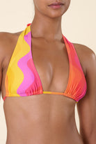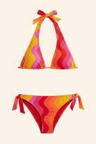 Le bikini Gaia est un nouveau maillot de bain deux-pièces, caractérisé par un imprimé vague vibrant d’inspiration rétro et une silhouette épurée et flatteuse.