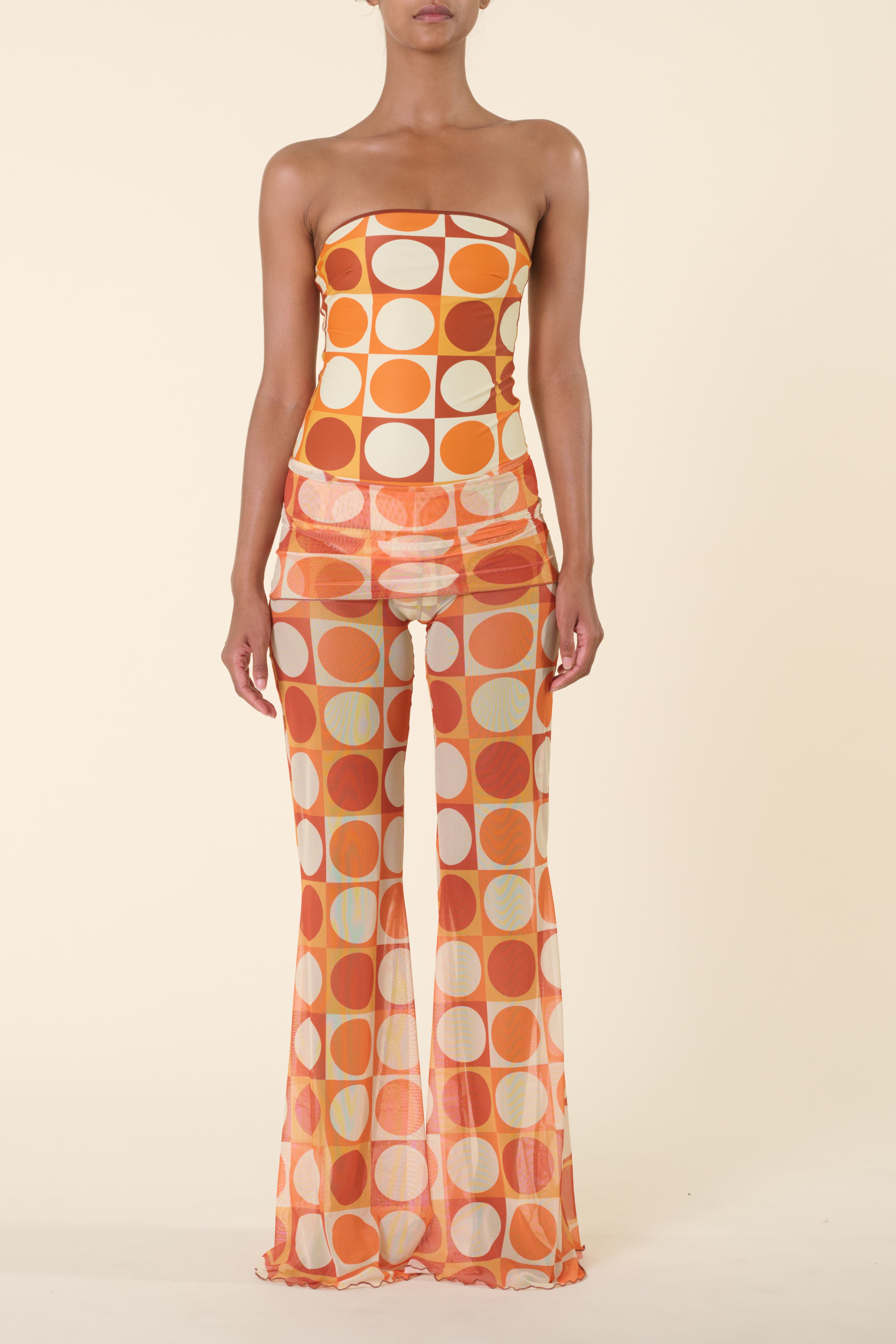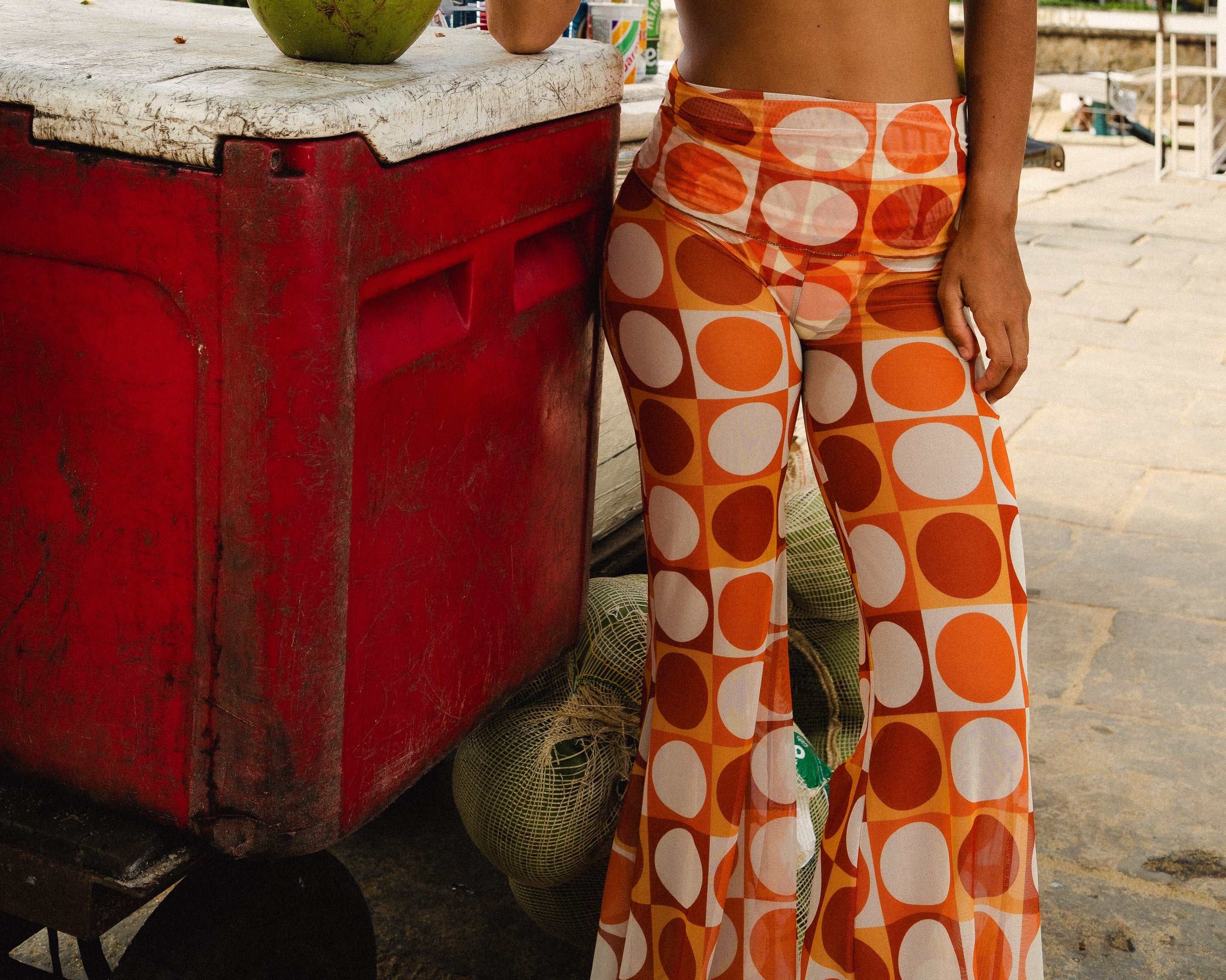 Sa taille basse épouse le corps tandis que sa transparence subtile et son imprimé ondulé apportent mouvement et légèreté. À porter sur un maillot pour un look solaire en journée, ou associé au Barbi Top pour une silhouette coordonnée et affirmée.