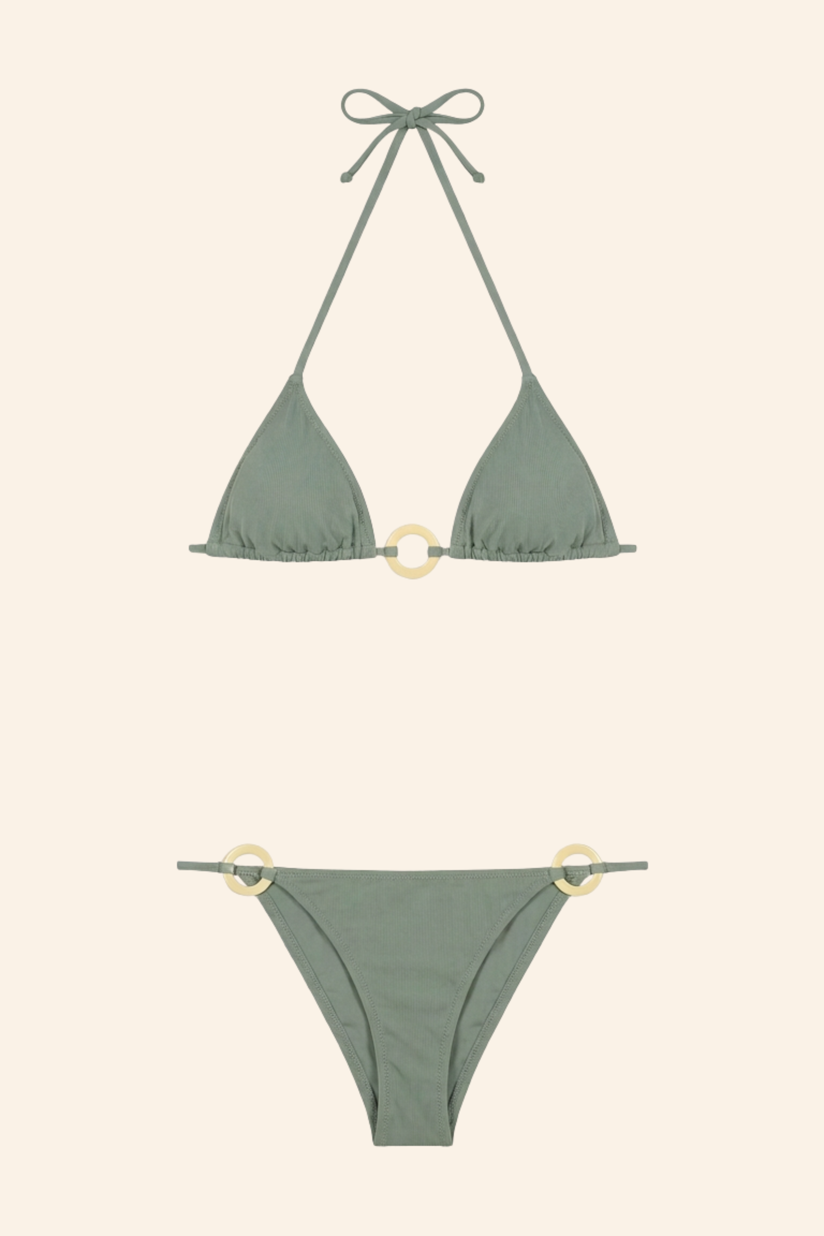 Retro-inspired bikini, our Camilla model in a vibrant kaki shade.
