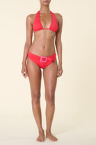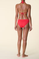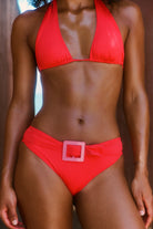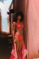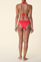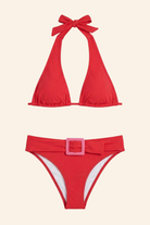 The Carlotta Cherry Red is a signature two-piece bikini inspired by the bold elegance of the 1970s.