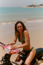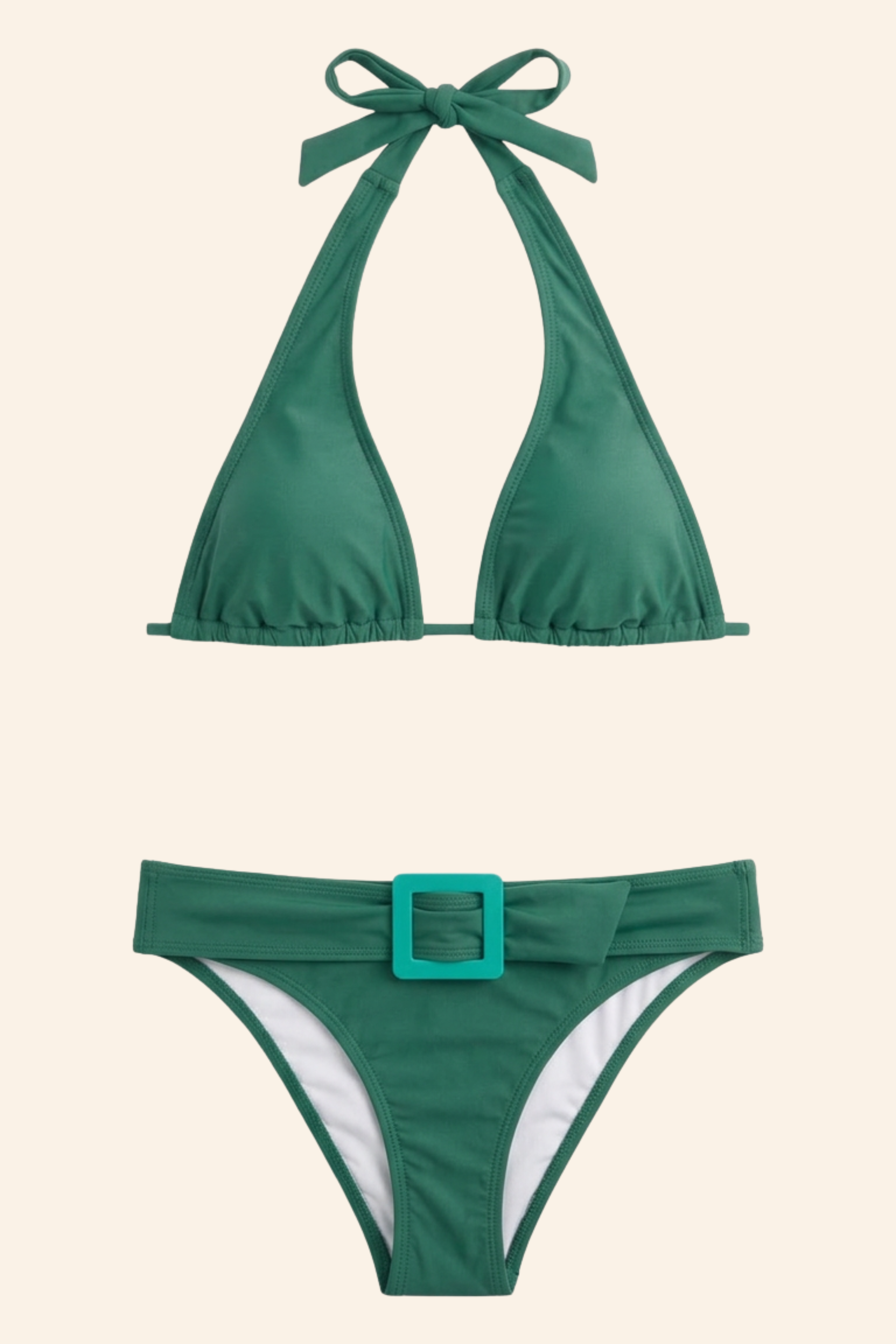 The Carlotta Green is a the new signature two-piece bikini inspired by the bold elegance of the 1970s.