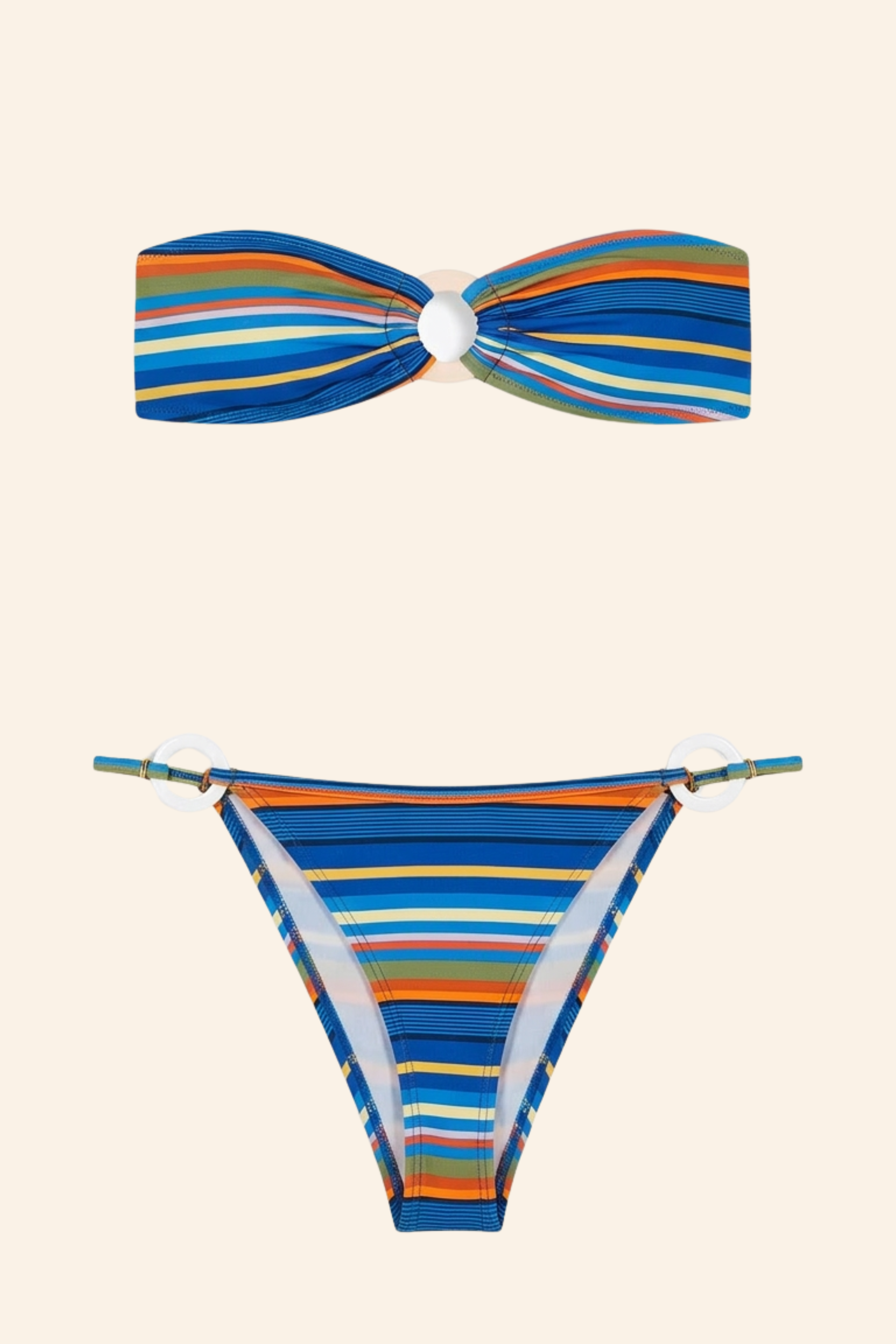 Features a bandeau top with a statement center ring detail.